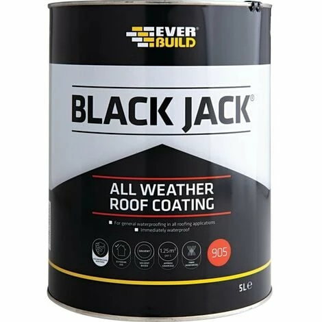 Black Jack All Weather Roof Coating is an effective, general purpose roof coating. It is resistant to wash off by rain almost immediately after its application and is therefore ideally suited for winter use. Black Jack All Weather Roof Coating may be applied by brush to waterproof and re-seal many different types of roof coverings, including: