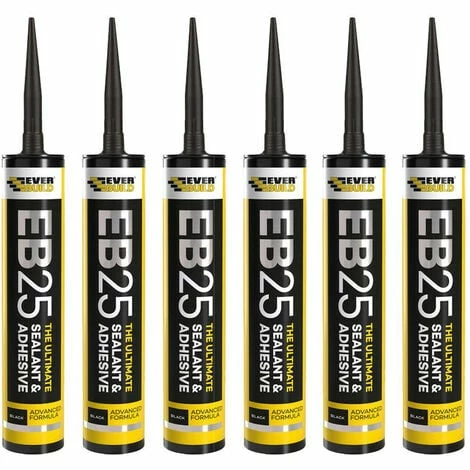 - 6 x Everbuild EB25 Hybrid Sealant Adhesive Black 300ml