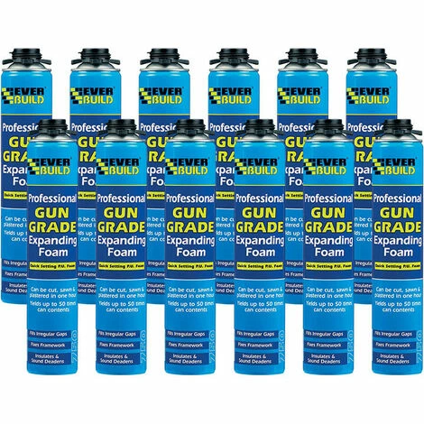 - 12 x Everbuild EVGF7 Gun Grade Expanding Foam 750ml 12 Cans