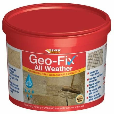 Everbuild Geo-Fix® All Weather solves the perennial problem of applying jointing compound in wet weather. Geo-Fix All Weather has all the legendary time and labour saving benefits of standard Geo-Fix, is easy to brush into the joints and simple to point up. In fact the only difference is it can be applied in wet weather. The compound is a quick and easy way of applying a permanent rigid joint with no special machinery or equipment required. It is suitable for natural stone, concrete, slate, clay, terracotta and granite and can be used in areas subject to light vehicular traffic.