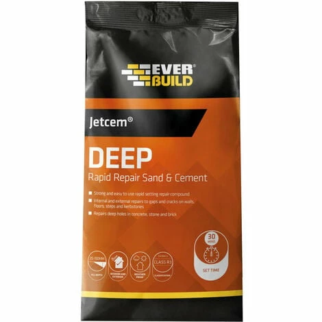 Everbuild JETMIX2 JetCem Pre-Mix Sand And Cement is a pre-mixture of sand and cement which is very easy to use. This product is also useful when doing patchwork due to the fact that it sets in 30 minutes whether it is in the cold, wet or dry.