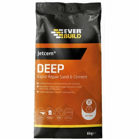 Everbuild JETMIX6 JetCem Pre-Mix Sand And Cement is a pre-mixture of sand and cement which is very easy to use. This product is also useful when doing patchwork due to the fact that it sets in 30 minutes whether it is in the cold, wet or dry.
