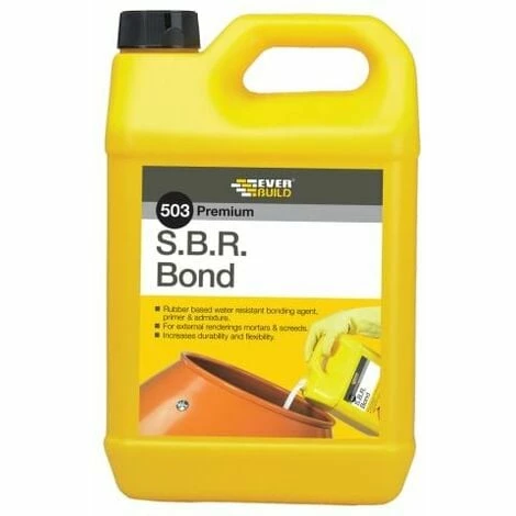 The Everbuild SBR Bond is a latex based, water-resistant bonding agent and admixture for use in areas subject to humidity, dampness and continuous water contact. Improves water resistance of cement mixtures by forming a reinforcing polymer that increases long-term durability and flexibility of the mix on renderings and floor screeds.