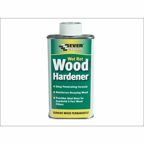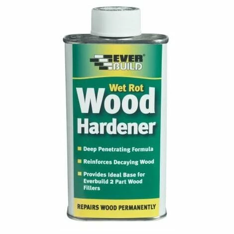 Everbuild Wet Rot Wood Hardener is a highly penetrative solution of selected resins in solvent which soaks deep into the fibres of decaying wood and dries to leave the wood hard and resistant to further moisture penetration.