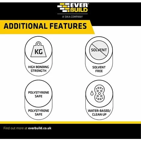 Everbuild Gun A Nail Standard is a high strength, gap filling multi-purpose building adhesive based on a tackified solvent free system for use in a wide variety of building and home improvement applications.