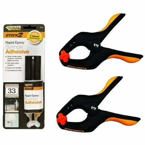 STICK 2 RAPID EPOXY ADHESIVE is an industrial strength two part clear adhesive which sets hard in just 10 minutes. RAPID EPOXY ADHESIVE is ideal for bonding metals, crockery, glass, wood, china, dry concrete, rubber, fabrics, crystal, jewellery/precious stones and various hard plastics. Due to its exceptional strength, this product may be drilled, sanded, machined and painted once fully cured.
